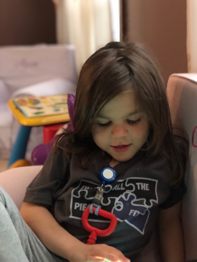 In this picture, Courtney is wearing a shirt for autism awareness. It shows puzzles pieces and says “Until all the pieces fit”. Seeing so many people in this meeting shows how many puzzle pieces it really does take. But together we do find a way to make them all fit. I will forever be grateful for the staff at her preschool that helped bring her so far.