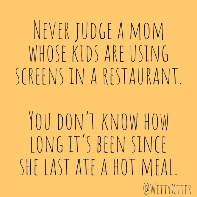 Someone posted in a Facebook group that they saw a family out at a restaurant on Father’s Day and a young child in this group was on their tablet completely engaged in rather than their family. As a teacher she did a public service announcement of how much harm screen time has on a child’s development. This poster completely shamed this family whom she didn’t know. My first thought was, “yikes, she would have a field day with my family.”