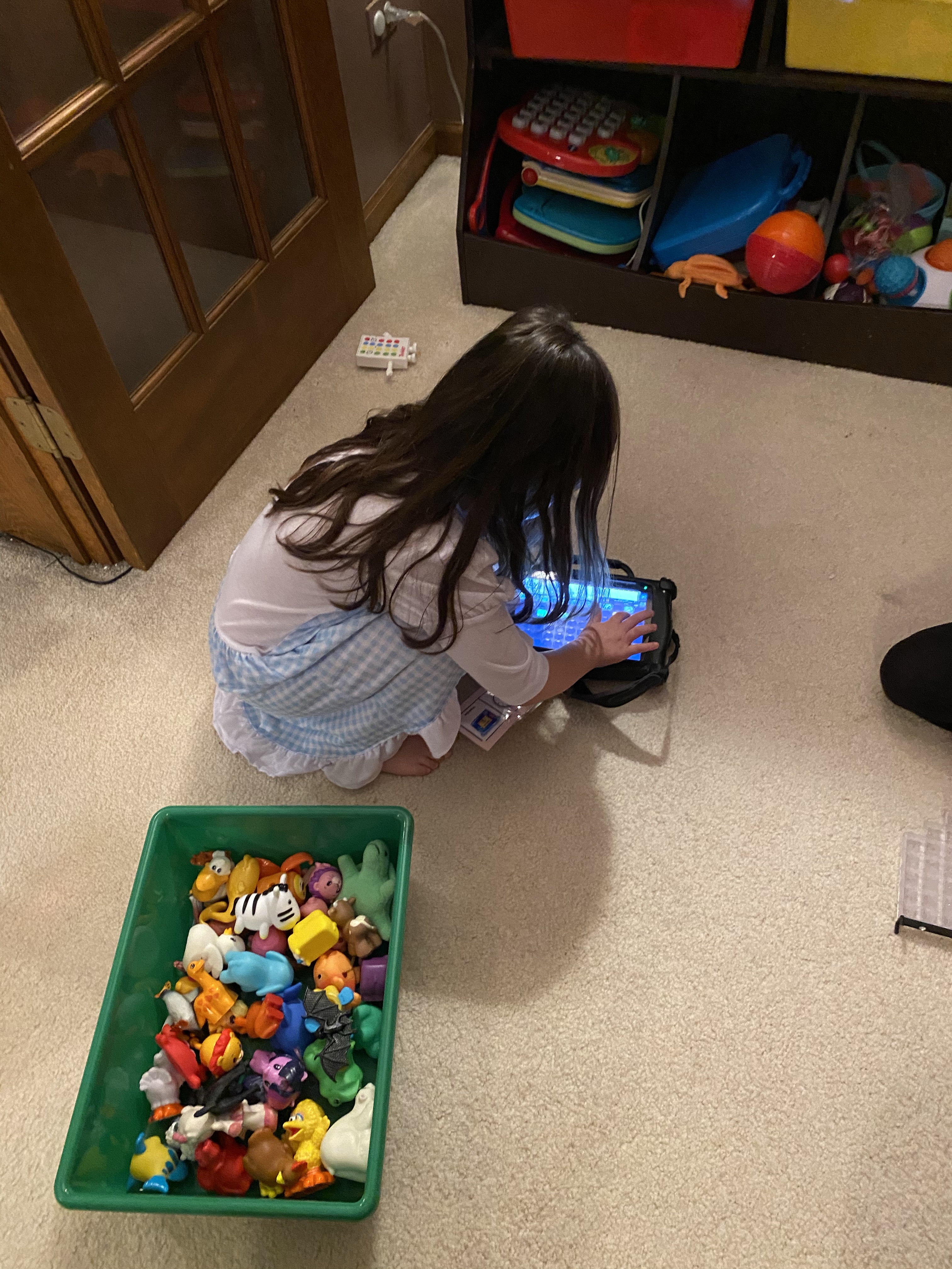 Alyssa comes up to me and says, “Mom, I want to play animals with Courtney. Can you show me how to say, ‘want to play animals’ on her talker?” Holding back my tears of joy, I quickly found the talker and showed Alyssa how to say “play animals”. Alyssa tried it and then went to Courtney and asked “play animals” using the talker. Beautiful doesn’t even come close to explaining how this moment felt.