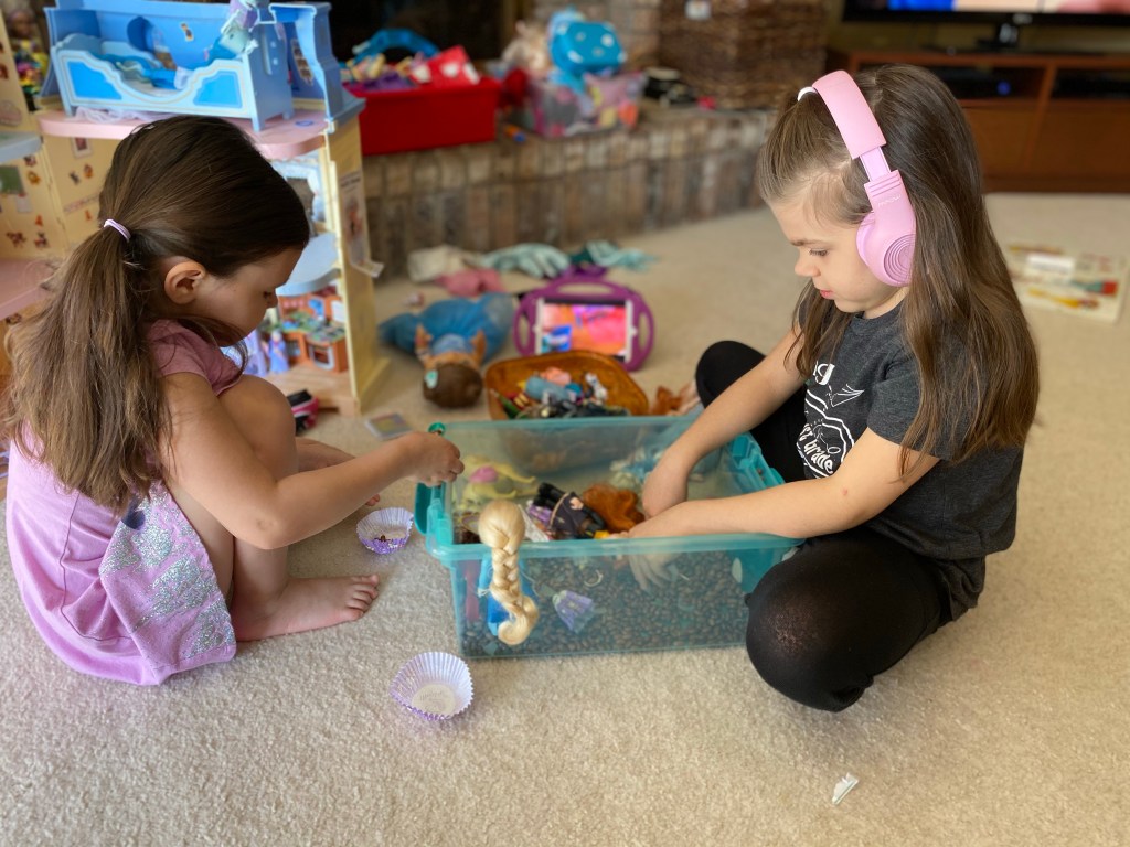 Today I watched Alyssa go from fear to then ready to help make her happy. She knew Courtney would enjoy playing in the sensory bin that she had out so went out of her comfort zone and asked Courtney to play with her. Sure enough it made Courtney happy.