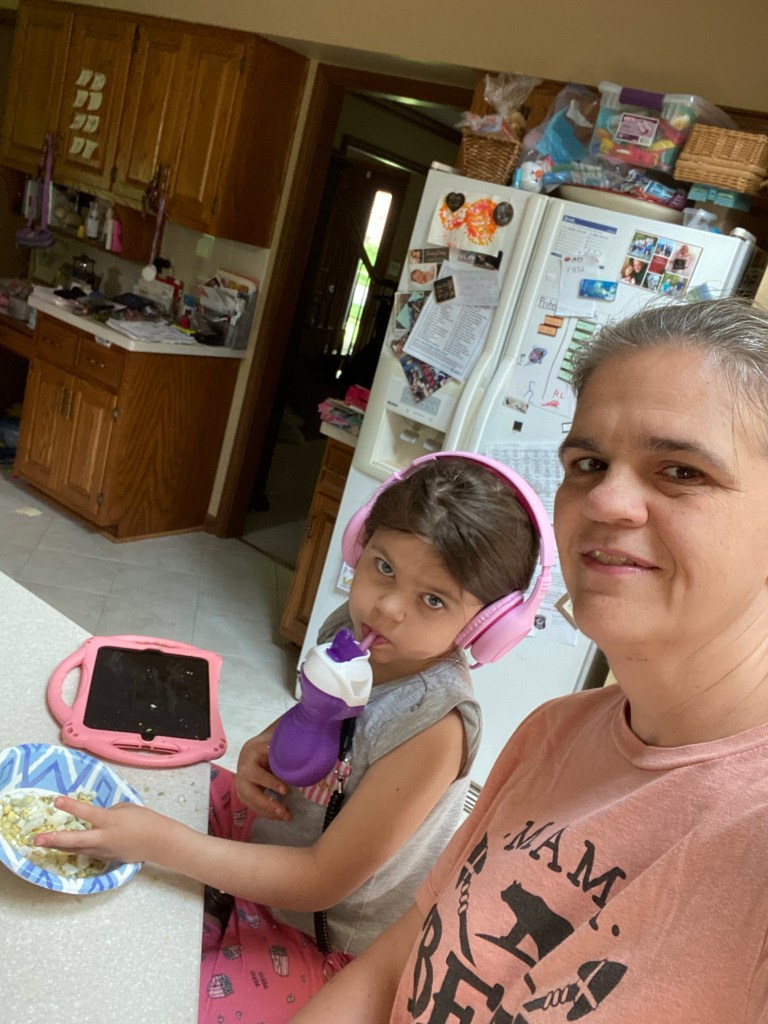 Milk cup…I was so proud of myself for getting Courtney off the baby bottle early on. I needed to find a cup that she didn’t need to tip because she couldn’t get the hand of holding and tipping bottle so she can feed herself. After trying several different type of straw cups that didn’t need tipping, we found one. 6 years later and she will still only drink her milk out of one type of cup. Put her milk in any other type of cup and she won’t drink it. So when you see my 7 year old drinking out of a “baby cup” know that this is literally the only way we get fluids in her. This is our autism.