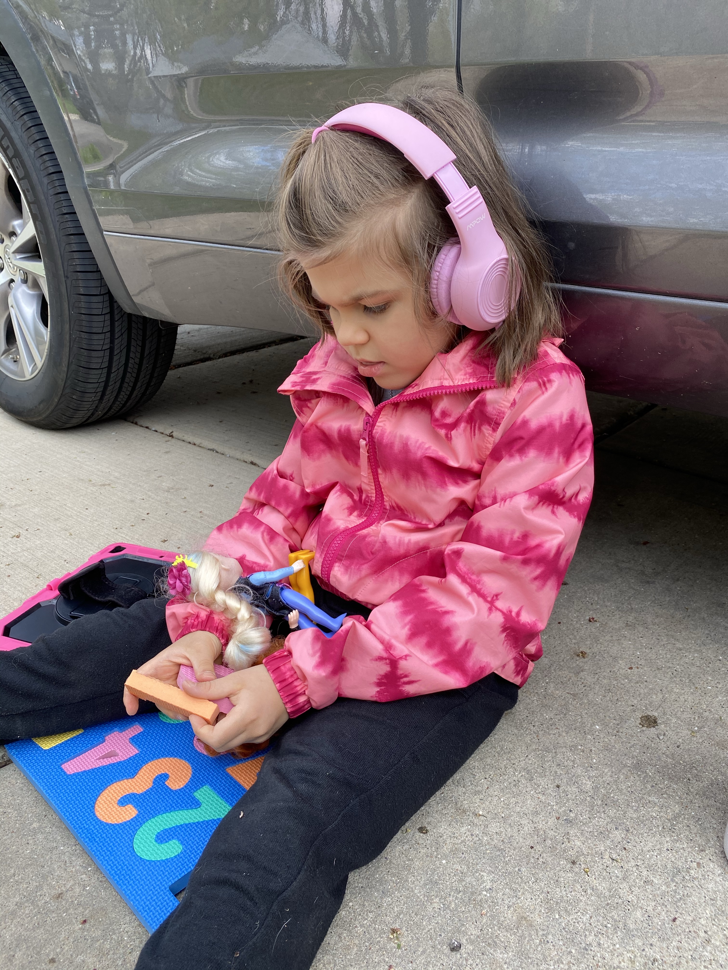 Play dates….This is what play dates look like. Even play dates with cousins. Alyssa is off playing with the other kids and Courtney chooses to be by herself. It’s important to note Courtney is choosing this. The others are not leaving her out. She finds a toy or object that calms her and she stays away from others. It often breaks my heart to watch her isolate herself but if that’s what keeps her happy in settings that are uncomfortable for her, then so be it. This is our autism.