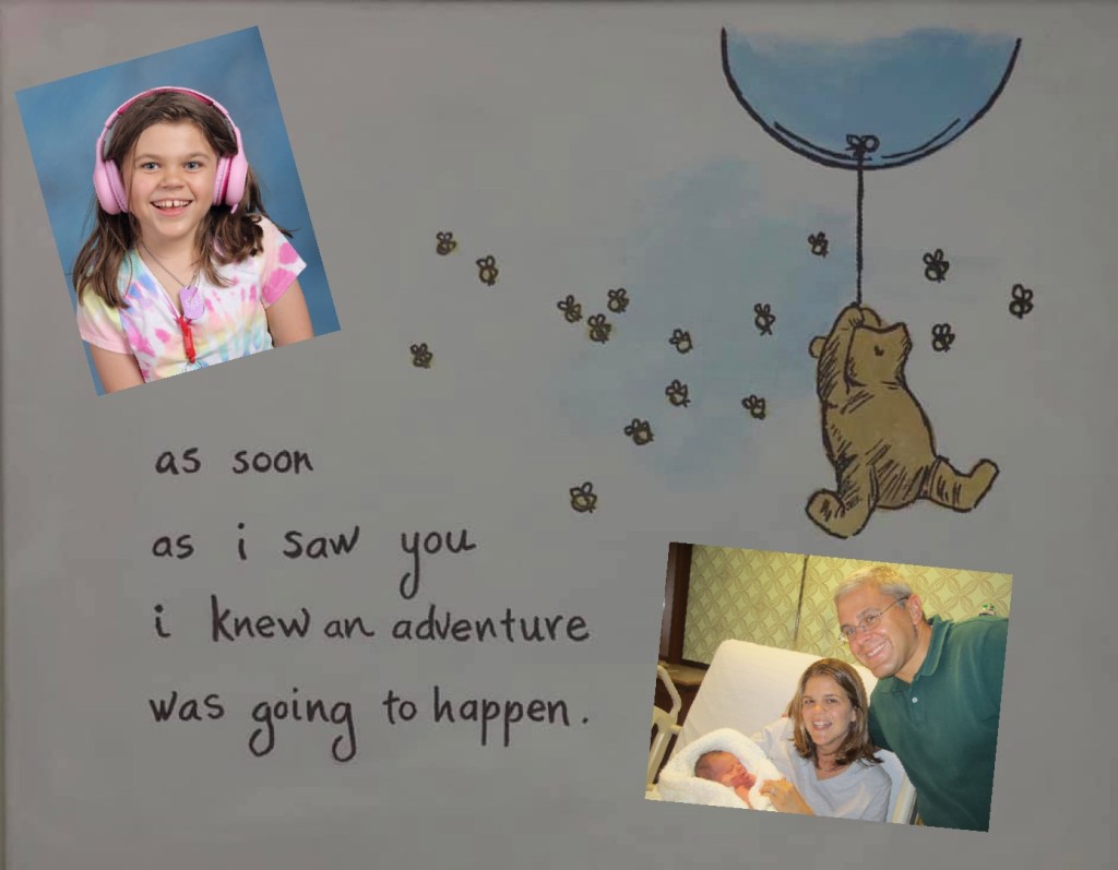 Your Grandma Beej painted this beautiful Winnie The Pooh picture with my favorite quote on it for your nursery before you were born. It reads, “As soon as I saw you, I knew an adventure was about to happen.”