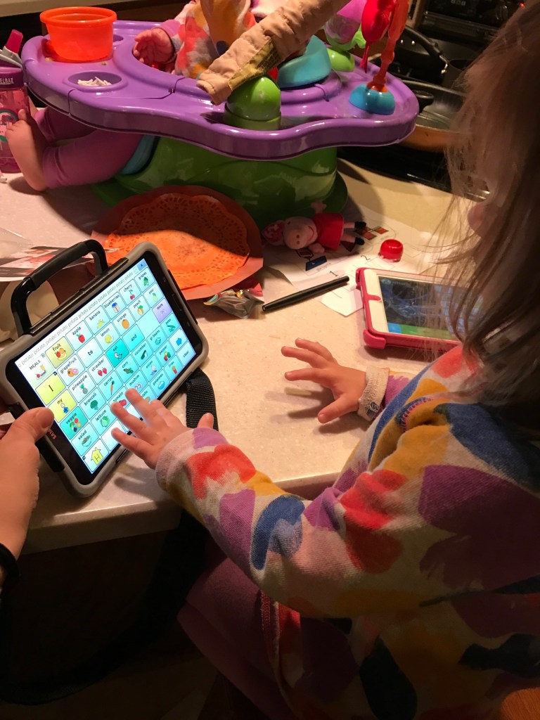 Today’s picture challenge is to show a picture of your child meeting a milestone. Since a child’s first words is a big milestone, I decided to share a picture of Courtney saying her first “word”. Was it at the time she was supposed to? No. Was it verbally? No. Did she meet a milestone? YES it just looked different and boy were we proud of her!!!