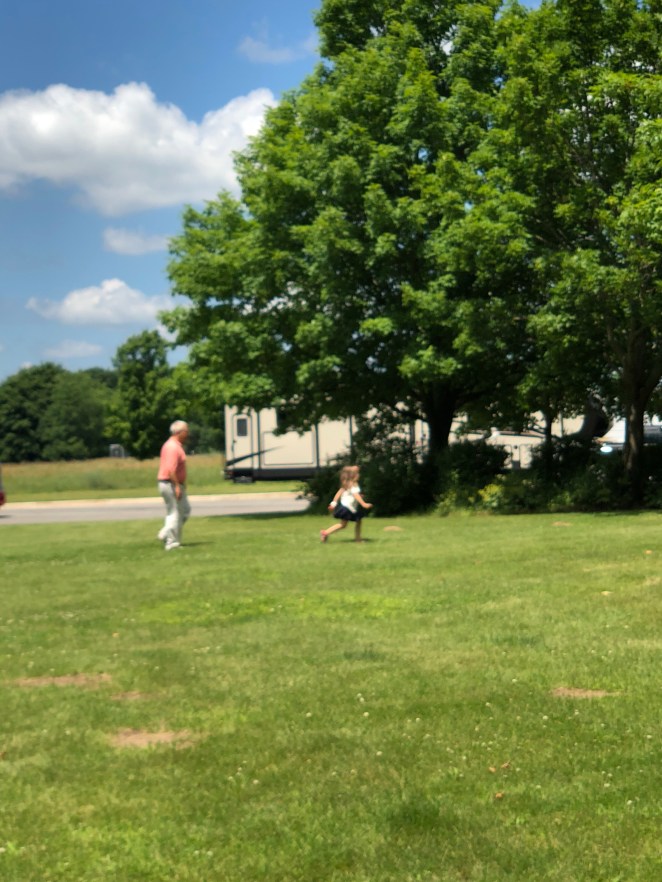 “Here’s a rest stop with a big field for Courtney to run. I’ll run with her.”